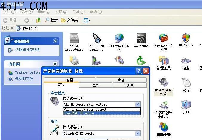 HP 4311S改XP系统无声的原因是底本的 声音输出是由soun dmax声卡来发声的 ,可是当装了显卡驱动 后,由于显卡驱动中包 涵了ATI 高清声卡,也就是HD MI的声卡,当装完 了显卡驱动后声卡输出 默认为了ATI的这个 声卡,只要在“把持面 板”里面的“声音和音 频设备”,里面的“音 频”标签,然后在“声 音播放”里面默认设备 下拉菜单选“soun dmax”就有声了!具体操作如下: